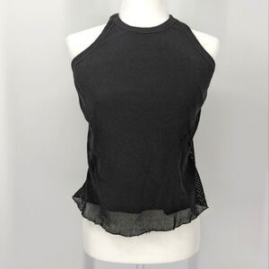 Vince Women's Black Mesh Racerback Cropped Cotton Tank Top Large Grunge Goth