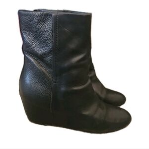 Vince black ankle wedge boots