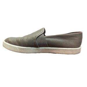 Vince Women’s Blair Perforated Gray Leather Flat Slide On Shoes- Size 9.5