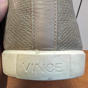 Elevate your wardrobe with these stylish Vince Women's Blair Perforated Gray Leather Flat Slide On Shoes in size 9.5. The sleek design and premium leather construction make them the perfect addition to any outfit, whether you're running errands or enjoying a day out. With a comfortable fit and easy slip-on style, these shoes are a must-have for any fashion-forward woman.