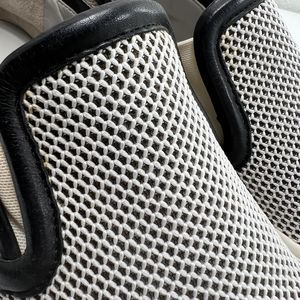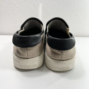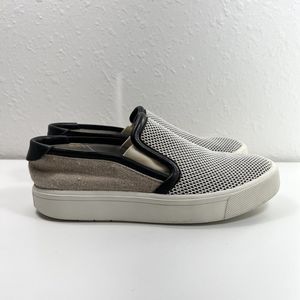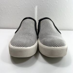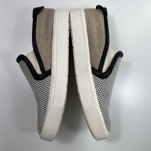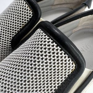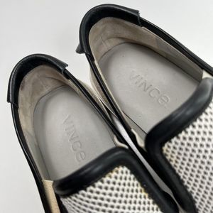 Vince Women's Bram Slip On Shoe Size 5.5 White Mesh Black Leather Sneaker Loafer