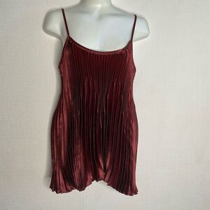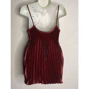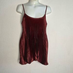 Elevate your casual wardrobe with this stunning Vince tank top in an eye-catching anise red color. The pleated accents and chevron pattern add a touch of designer flair to this regular fit cami-style top, which features a scoop neckline and spaghetti straps. Made from lightweight, breathable 100% acetate satin fabric, this top is perfect for summer and spring occasions.