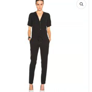 Vince Women's Contrast Trim Short Sleeve Jumpsuit Sz 2 Elastic Waist Black White