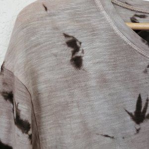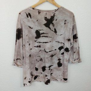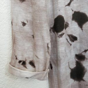 Vince Women's Crew Brown & Tan Tie Dye Splatter 3/4 Sleeve Folded Cuff Oversize Shirt
