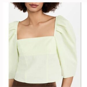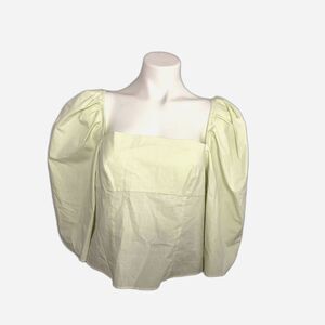 Green cotton (100% Cotton). Top. Square neckline. Three-quarter sleeves. Back zipper closure. 18" from shoulder to hemline. Imported.