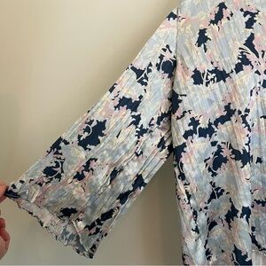 Vince Womens Floral Print Accordion Pleat Button Down Blouse Blue Pink Sz Small