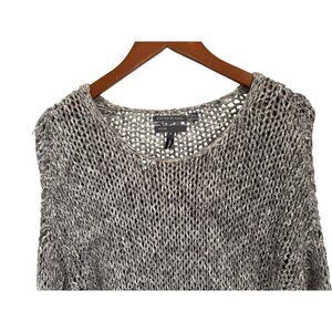 Vince Womens Hand-Knitted Open Weave Gray Tunic Sweater S Lightweight Crew Neck