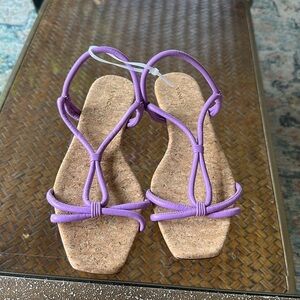 ce Womens Hazen Purple Leather Flats Slingback T-Strap Sandals Shoes NWT