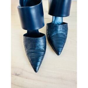 Vince Womens Heels Size 7.5 Navy Corrine Leather Pointed toe Croc Embossed