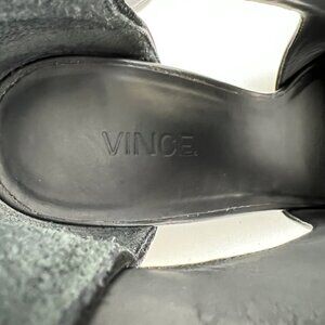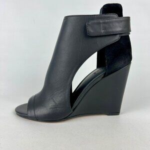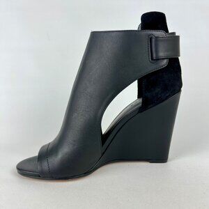 Vince Kara black leather & suede open toe wedge sandals / booties