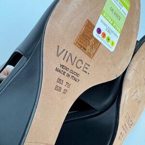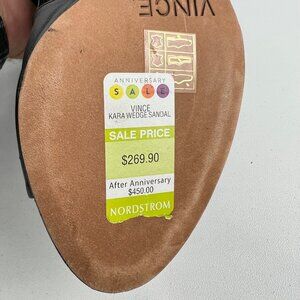 Vince Womens Kara Open Toe Wedge Sandal Black Leather Side Cutouts size 7