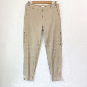 Vince Women's Linen Blend Cargo Jogger Trouser Pants Khaki Sz 4