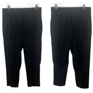 Vince Women’s Linen Cargo Pants Size Large Black High Rise Zipper Drawstring pockets Elastic Waist Crop
