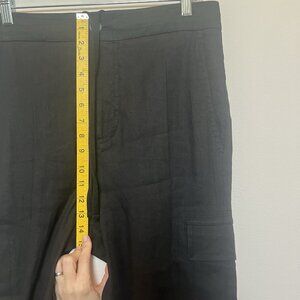 Vince Women’s Linen Cargo Pants Size Large Black High Rise Zipper Drawstring