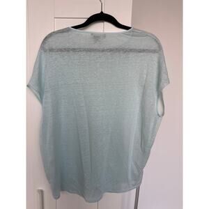 Vince Women's Linen & Silk with Leather Trim Light Blue Casual Shirt, Size XS