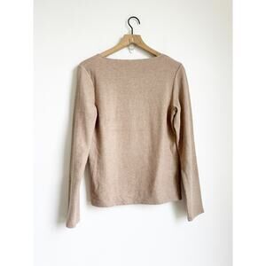 Vince Women's Long Sleeve Cozy Scoop Neck Top Large Tan Brown