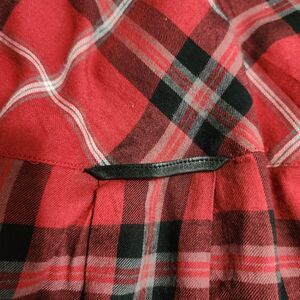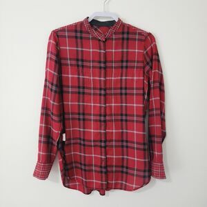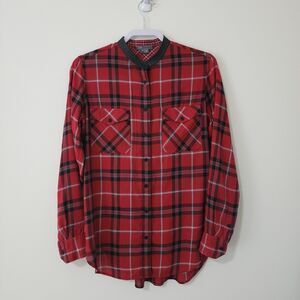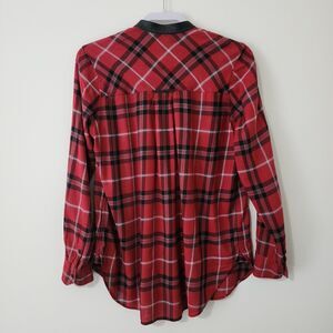 Vince. Womens Plaid Button-Down Shirt Red Black Long Sleeve Leather Band Size 10