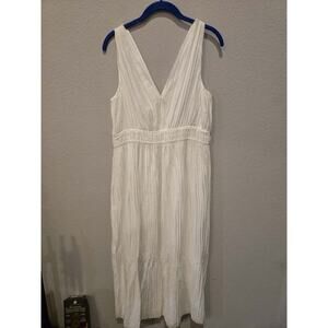 Vince Women's Pleated Double V-Neck Midi Dress White Size M Casual