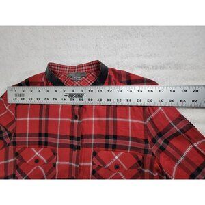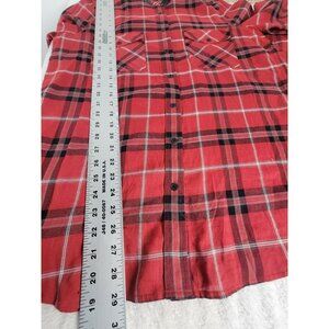 Vince Womens Red Plaid Long Sleeve Button-Up Shirt Size 12 Black Leather Trim