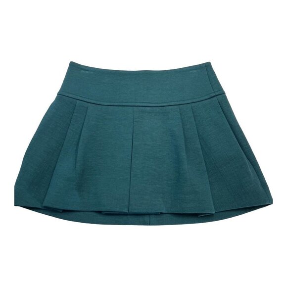 Vince Womens S Pleated Front Mini Skirt Dark Green Pockets Back Zip