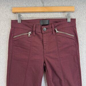 Vince Womens Shiraz Skinny Leg Moto Pants Wine Color Red Zip Detail Size 27