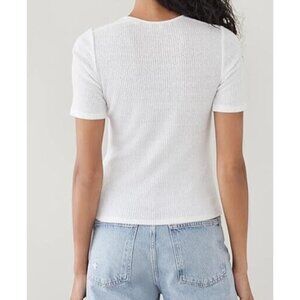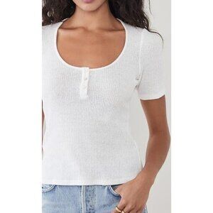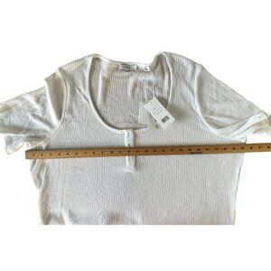 Vince Women's Short Sleeve Scoop Neck Henley Top Semi-Sheer Sz XXXL Optic White
