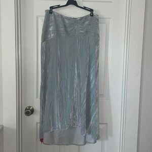 A ruched detail softly structures this dreamy skirt, tailored in textured, sea-glass-shaded velvet for a look of airy elegance.