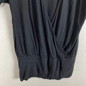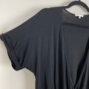 Vince Womens Size Small Black Stretch Surplice Top Short Sleeve Shirt Blouse
