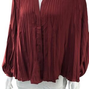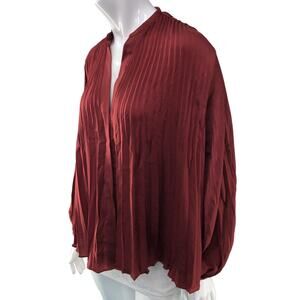 Vince Womens Size XS Chevron Pleated Blouse Top Flowy V Neck Popover Shirt Red