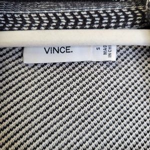 Vince Women's Small Long Cardigan Sweater Black White Knit Short Sleeve