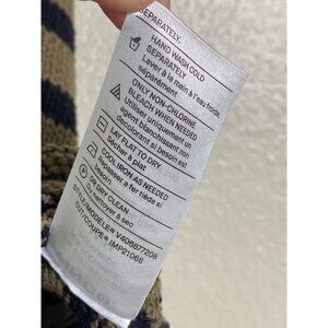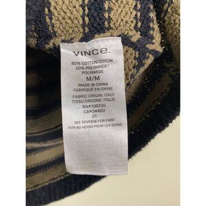 This Vince striped knit tank top is crafted from a cotton and polyamide blend, offering comfort and durability. Its design features a classic navy and beige color combination, suitable for various casual settings. The sleeveless style and medium size make it a versatile addition to any wardrobe.