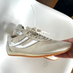 Vince Women’s Suede Leather Sneakers White Gray Retro Runner Size 11