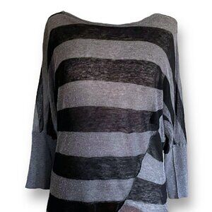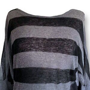 Vince Womens Sweater XS Gray Black Stripe Slouchy Thin Knit Silk Alpaca Wool