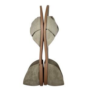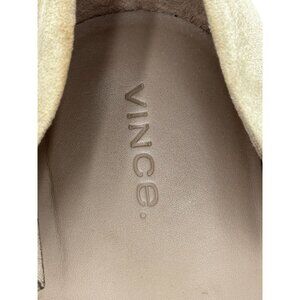 These Vince sandals blend casual elegance with thoughtful design. Featuring a soft suede heel and durable canvas crisscross straps, they offer both comfort and style. Their neutral beige tones and flat sole make them versatile, suitable for a range of outfits. The open-toe design ensures breathability, while their durable construction promises lasting wear.
