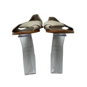Vince Womens Sz 39 Beige Suede Canvas Crisscross Flat Sandals Summer Comfortable