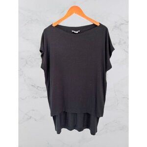 Vince Womens Tunic High-Low Black Double Layer Short Sleeve Top Size S