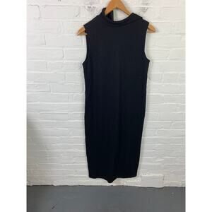 Vince Women's Turtleneck Half Zip Sheath Dress Slim Fit Sleeveless Black Size M