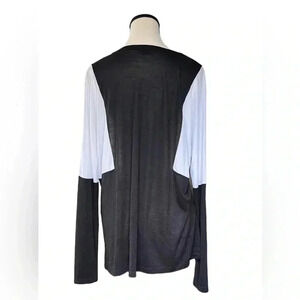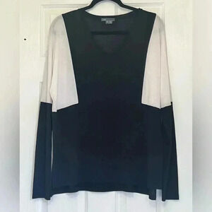 Vince Womens V Neck Shirt Black White colorblock Semi Sheer Long Sleeve Top Sz M