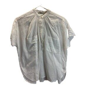 Vince Womens White Boxy Guaze short sleeve Top Blouse 1/4 button oversized XS
