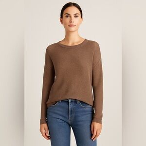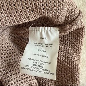 Vince Women’s XS Open Weave Knit Sweater Brown Taupe Lightweight Rayon Nylon