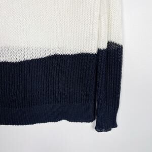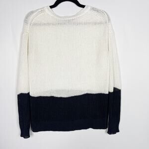 Vince Womens XSmall XS Cream Navy Blue Open Knit Colorblock Sweater Crew Neck
