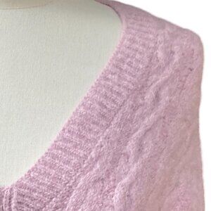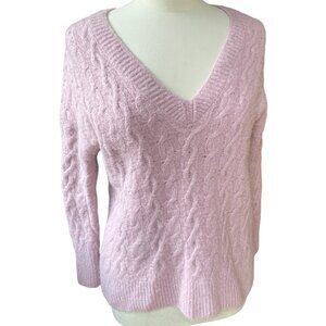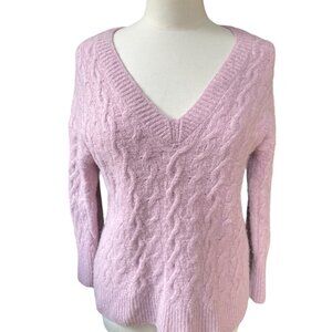 Vince Wool Alpaca Cable Knit Sweater Pink Feminine Soft Girl Quiet Luxury Fisherman. Please note the hemline has some stretch to it. Please see photos. It is also tagged an XL, but measures more like a medium or large.