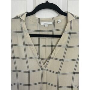 Vince Wool Blend Cream Plaid Flannel Long Sleeve Collared Blouse Size Medium