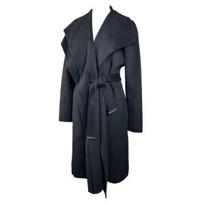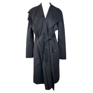 Vince Wool Blend Wrap Coat Black Double Face Drape Neck Belted Minimalist