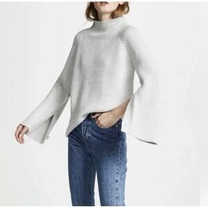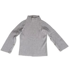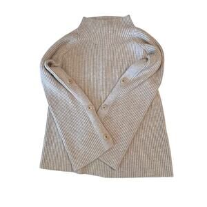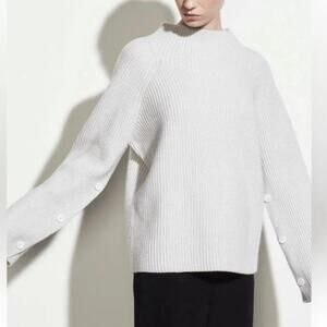 Vince Wool Cashmere Button Sleeve Funnel Neck Sweater Xl Gray Ribbed Knit