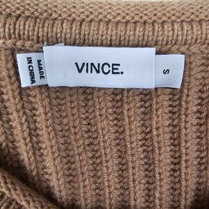 Vince Wool Cashmere Diagonal Ribbed Sweater S Camel Neutral Quiet Luxury Preppy