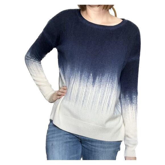 Vince Wool Cashmere Long Sleeve Pullover Ombre Sweater Cream Blue Small