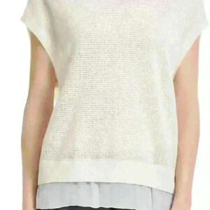 Vince 70% wool 30% cashmere lightweight pointelle blouse with 100% silk hem. Cream color. Size small.