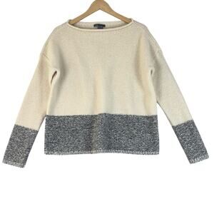 Luxurious Vince Roll Neck Pullover Boxy Knit Sweater. Colorblock cream and grey wool, silk, cashmere blend. Super soft and cozy.