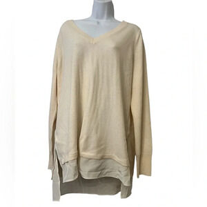 Vince Wool Cashmere Sweater Womens Ivory Silk Shirttail V Neck Lightweight XL